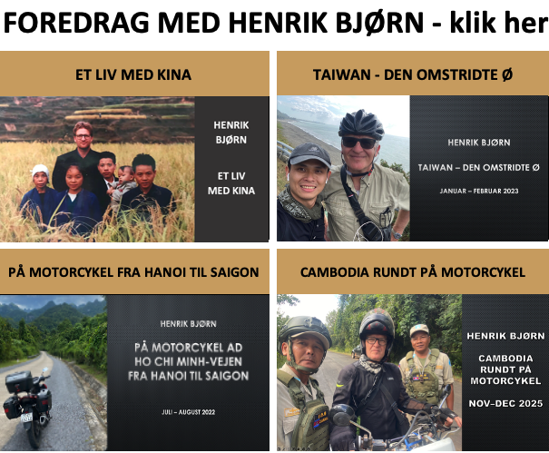Mine foredrag omhandler i øjeblikket Cambodia, Kina, Taiwan og Vietnam. Foredragskataloget bliver gradvist udvidet til at omfatte hele #Asien10.